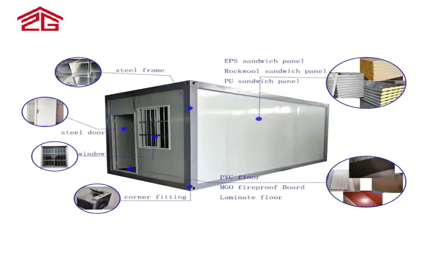 Krov i zid: 0,5 mm željezni lim 50 mm EPS izolacijski sloj